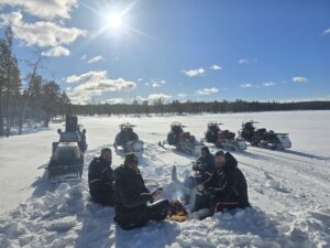 Vor der Tour gibts erst eine Einweisung im Umgang mit dem Schneemobil und Sie werden angemessen eingekleidet.